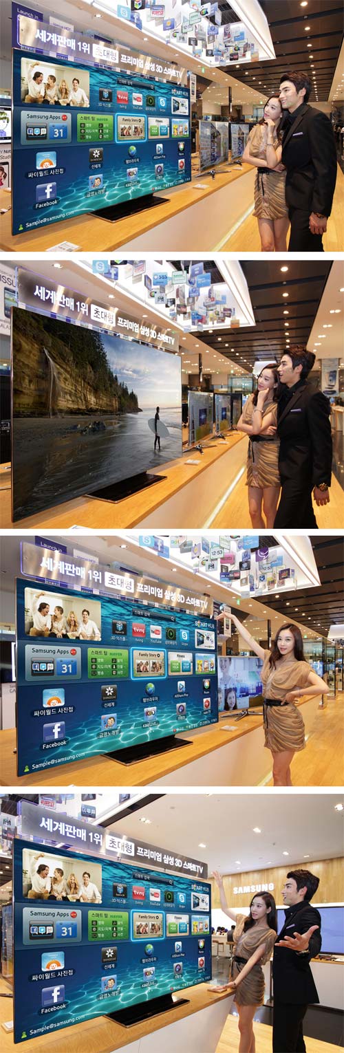 Новый телевизор называется ES9000, диагональ его экрана составляет 75 дюймов, разрешение и прочие спецификации сайт Akihabara News не указывает. Зато есть информация о толщине рамки, она крайне мала на фоне столь огромной панели и составляет 7.9мм. Девайс поддерживает различные функции, в том числе Smart Interaction, Smart Contents и Smart Evolution, это видимо как-то связано с "умным телевидением". Я человек консервативных взглядов, умного телевидения мне не надо