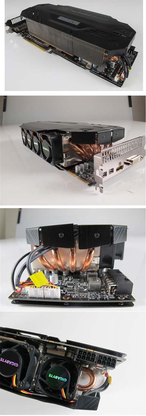 Повторюсь, меня в этой ужасающей конструкции интересуют лишь две вещи - эффективность охлаждения и уровень шума от видеокарты, всё же 40мм вентиляторы чаще всего работают на высоких (далеко за 2000 об/мин) оборотах и ждать от них можно чего угодно. Надеюсь, что инженеры и программисты Gigabyte нас не подведут и в итоге у них выйдет приятный в плане потребительских качеств продукт.