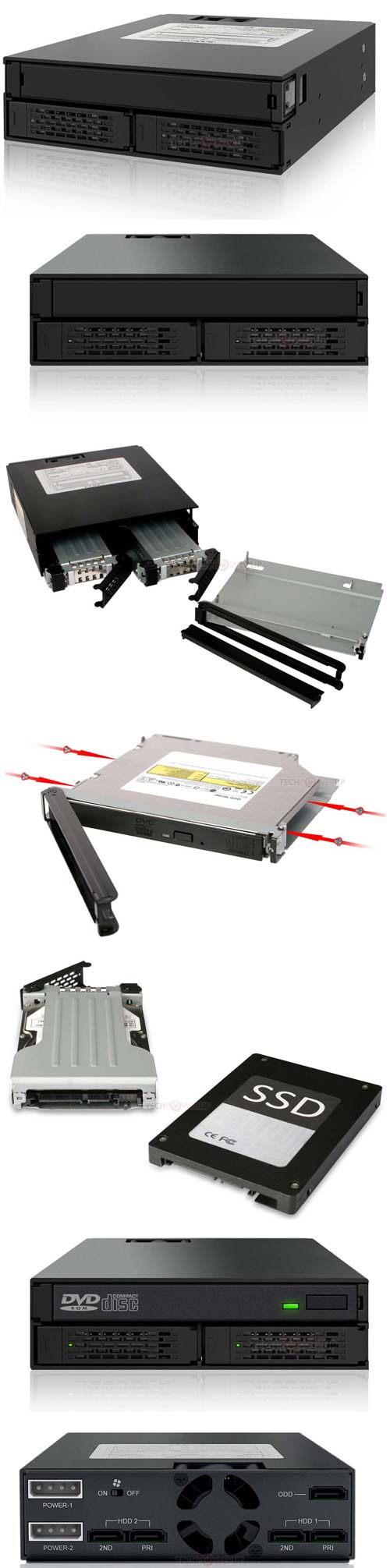 У компании Icy Dock появилась новинка - устройство, объединяющее в себе функционал рэка для 2.5" накопителей и места для установки тонкого оптического привода.