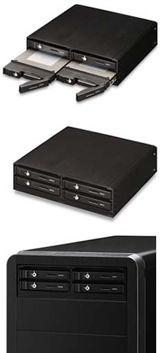 Изделие именуется CMRK-S4 и представляет собой устройство, в котором можно разместить до четырёх 2.5" накопителей. Само произведение японских конструкторов должно быть помещено в 5.25" отсек ПК, при этом предоставляя пользователю возможность горячей замены подключенных SSD/винчестеров/гибридных накопителей.