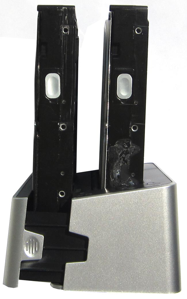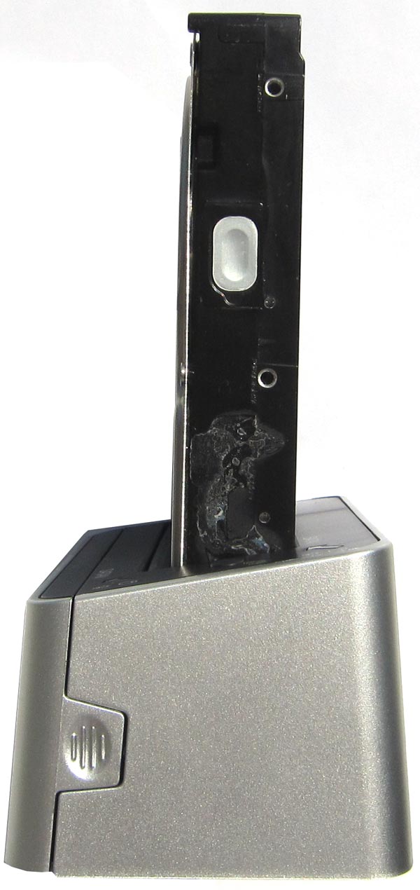 Изделие имеет четыре резиновых (резина плотная) ножки, на которых оно плотно прилегает к столу, когда в 3UBT3 помещено сразу два 3.5" винчестера. Эти же ножки препятствуют излишней вибрации от скоростных накопителей: