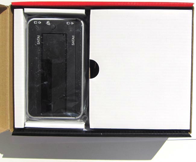 Мы сразу же замечаем устройство AgeStar 3UBT3, оно лежит в правой части коробки (но на фото получилось так, что в левой) и помещено в прозрачный пакет.