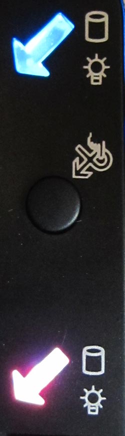 Когда оба накопителя подключены, на корпусе устройства загораются светодиоды фиолетового (или фиалкового) цвета: