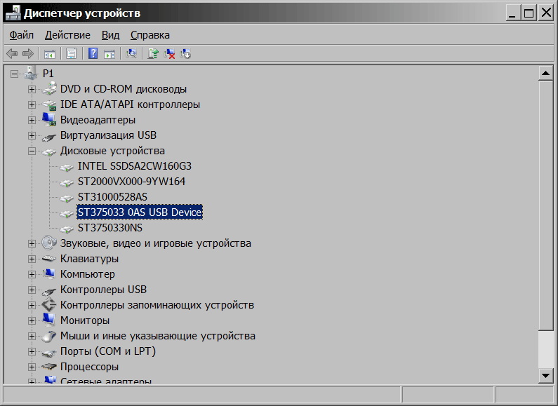Итак, пришла пора тестов. Но сначала я покажу, как определяются винчестеры, подключенные с помощью AgeStar 3UBT3 в ОС Windows 7:
