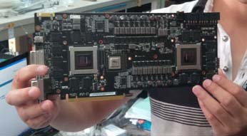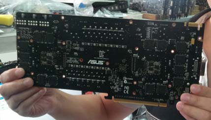 Что такое MARS III? В общих чертах я советую почитать июньскую новость по ссылке, а сейчас лишь сообщу более-менее новые подробности об этом двуглавом монстре на базе GK104. По фото хорошо видно, что печатная плата изделия чрезвычайно длинная, новинка питается от трёх 8-и пиновых коннекторов, обладает 21-фазовым питанием, использует Super Alloy дроссели, драйвер-MOSFET, а также PCI-Express 3.0 чип-мост PLX PEX8747 и 8ГБ GDDR5 памяти в 32 чипах, расположенных по 16 с каждой из сторон печатной платы.