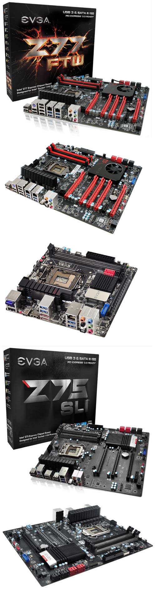А вот и фотографии новинок от EVGA, системных плат Z77 FTW, Z77 Stinger и Z75 SLI