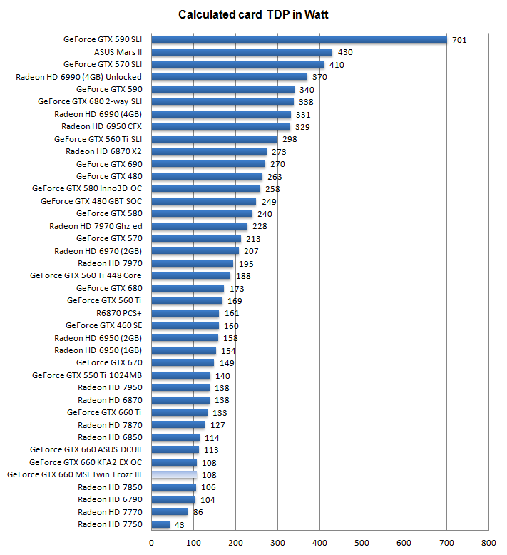 Поглядим, насколько хорошо / плохо выглядит MSI GeForce GTX 660 Twin Frozr III на фоне прочих видеокарт в плане энергопотребления: