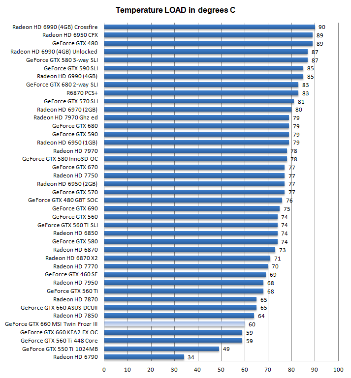 В нагрузке кулер TF III также показал себя молодцом, уступив всего один градус аналогичному продукту KFA2 и GTX 660 от Gigabyte.