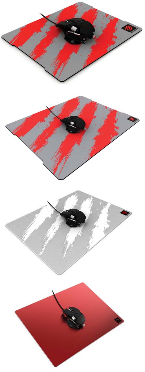 Коврик G.L.I.D.E.7 изготовлен из силикона, обладающего низким коэффициентом трения и потому подойдёт для лазерных мышей. Новинка на 150% больше стандартного коврика, с ней в комплекте идёт сумка для переноски. Модель G.L.I.D.E.9 создана из анодированного алюминия, также как и предыдущий коврик, это творение Mad Catz идеально подходит для лазерных мышей. Сумка для переноски данного коврика есть в комплекте изделия.