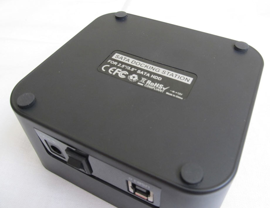 Снизу имеются 4 резиновые ножки благодаря которым вибрации от накопителей не передаются на стол.