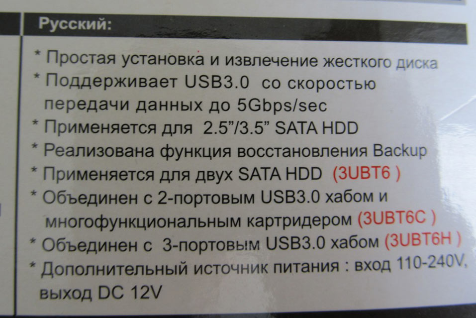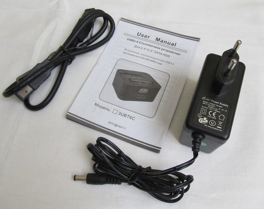 В комплект поставки входит USB 3.0 кабель (0,75м), блок питания и руководство пользователя (на русском языке).