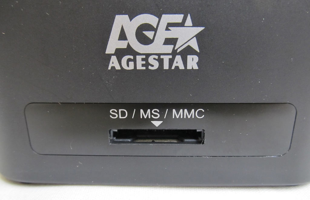 На передней грани имеется слот для подключения карт памяти, жаль нет дополнительных USB портов, впрочем у AgeStar есть док-станции с парой USB 3.0.