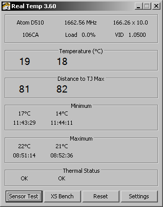 Начну с весёлостей. Так как сейчас бушуют морозы (по крайней мере у меня в городе), то я решил ради интереса посмотреть температуру процессора Atom D510, что был почти сутки нагружен по самое не хочу его основным занятием (раздачей торрентов, пока ещё не для моего трекера), вот полюбуйтесь: