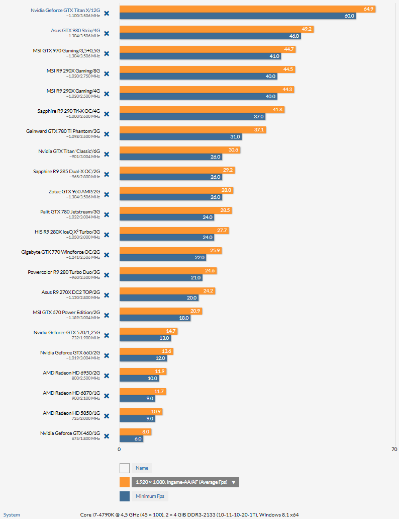 А вот результаты тестов различных видеокарт в этой игре, данные с ресурса PC GAMES HARDWARE ONLINE: