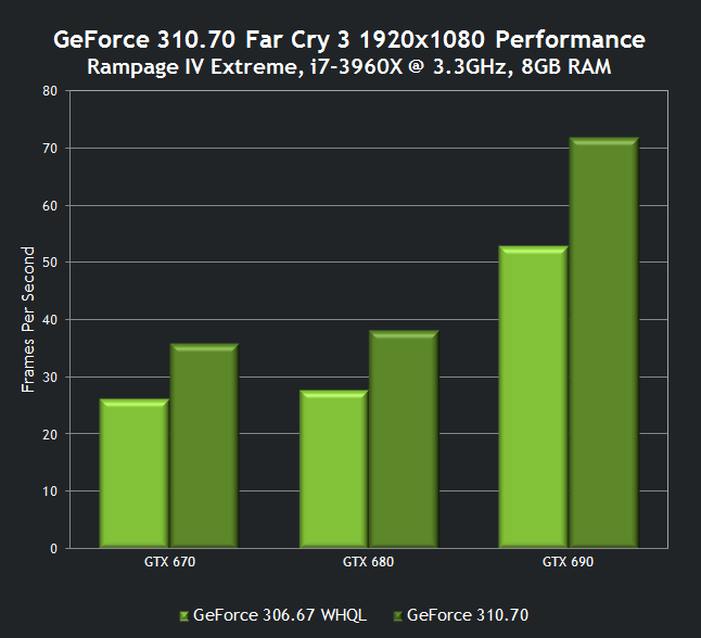 Nvidia разродилась Beta (или WHQL - пока непонятно) версиями своих драйверов для "Джифорсов" - 310.70 Beta/WHQL. Список изменений приведён несколько ниже. Драйверы предназначены, вроде как (я не уверен) для всех видеокарт Nvidia, от GeForce 6 до GTX 600.