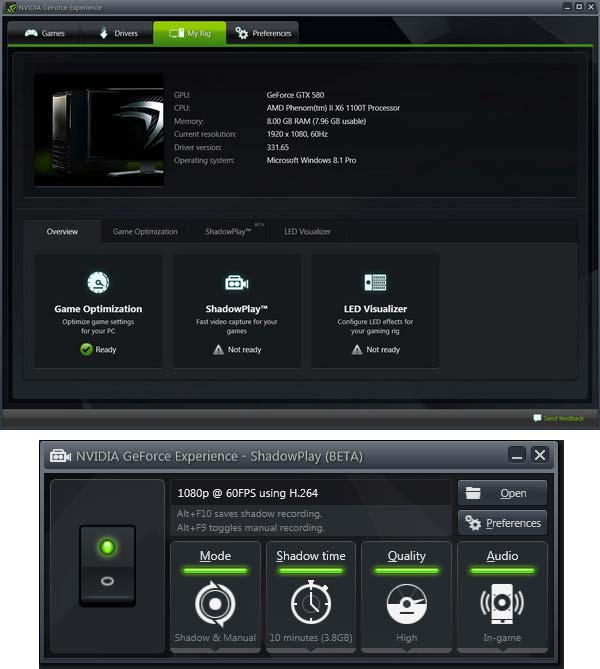 Nvidia разродилась Beta-версией своих драйверов для "Джифорсов" - 331.65 Beta. Главным изменением можно считать добавлением в GeForce Experience функции записи видео со сжатием в h.264, названной ShadowPlay. Драйверы предназначены, вроде как (я не уверен) для всех видеокарт Nvidia, от GeForce 8 до GTX 700.