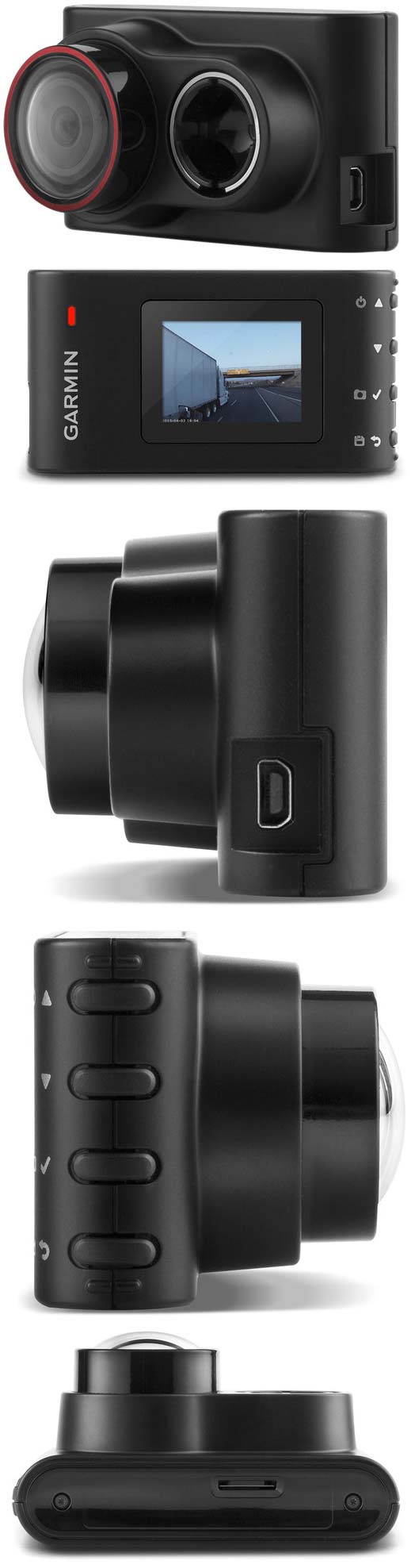 Помимо видео, продукт Garmin может снимать и фото, к компьютеру аппарат подключается по USB, комплектный софт позволяет просматривать и организовывать отснятый материал. В комплекте с изделием идёт всё нужное для монтажа и работы девайса внутри автомобиля.