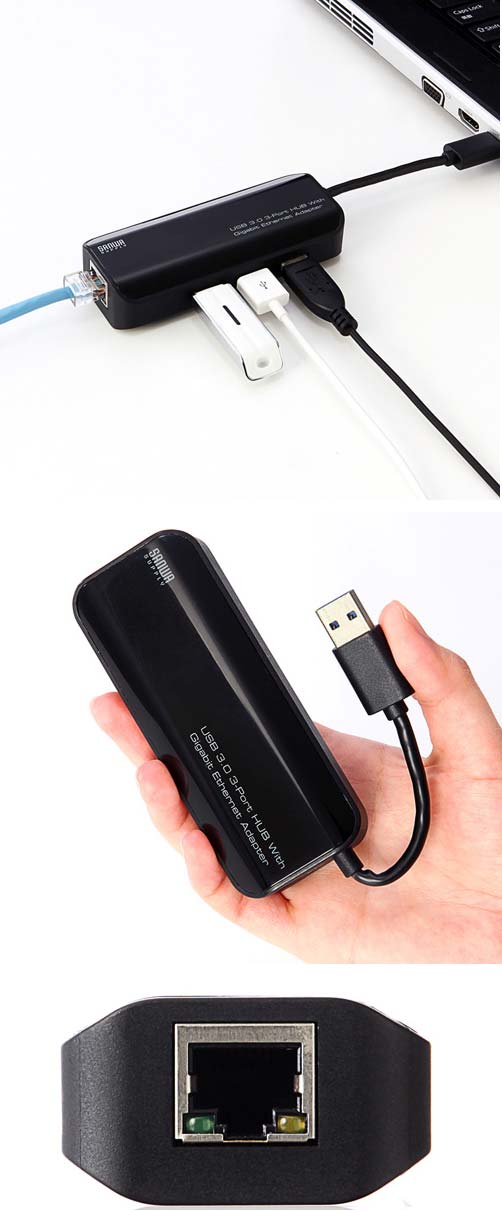 Аппарат 400-HUB022 сочетает в себе функционал USB 3.0 хаба (концентратора) и сетевой карты с гигабитным интерфейсом. Изделие подключается по USB 3.0 к компьютеру, даёт возможность использовать три своих порта USB 3.0, плюс объединять компьютеры в локальную сеть посредством Ethernet порта.
