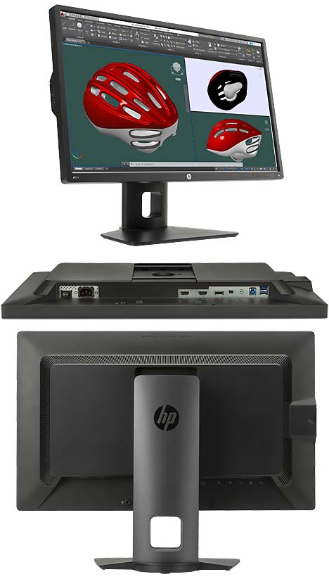 Диагональ монитора HP Z27s - 27 дюймов, соотношение сторон - 16:9, яркость - 300 кандел на квадратный метр, контрастность - 1000 к 1, углы обзора - 178 градусов, время отклика с включённым Overdrive - 6мс (g2g). У новинки антибликовое покрытие экрана, она обладает подставкой, позволяющей вертеть и крутить дисплей, менять его высоту и угол наклона так, как угодно пользователю (но в допустимых пределах).