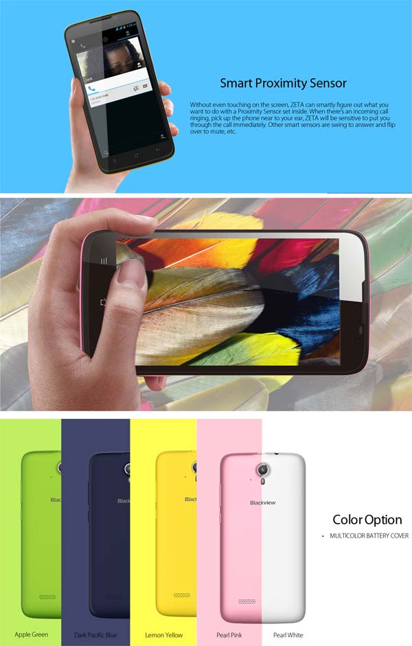 Новинка именуется Blackview ZETA, обладает 5" IPS Multi-touch экраном ёмкостного типа с разрешением 720p. Объём оперативной памяти равен 1ГБ, места для файлов владельца выделено 8ГБ, на 32ГБ его можно расширить. Основой аппарата стала 1.4ГГц 8-ядерная SoC MT6592 от MediaTek.