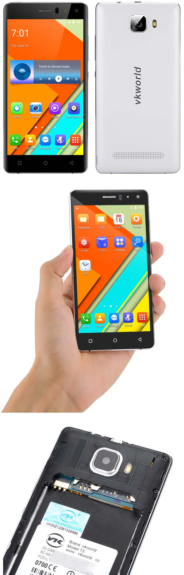 Изделие оснащено 3.5мм аудиовыходом, портом Micro USB 2.0, имеет размеры 143x73x11мм, весит 161 грамм. В комплекте с VKWorld T3 покупатель найдёт кабель USB, адаптер питания, инструкцию пользователя и защитную плёнку для экрана. Умный телефон предлагается в настоящее время по цене в 80 долларов США.