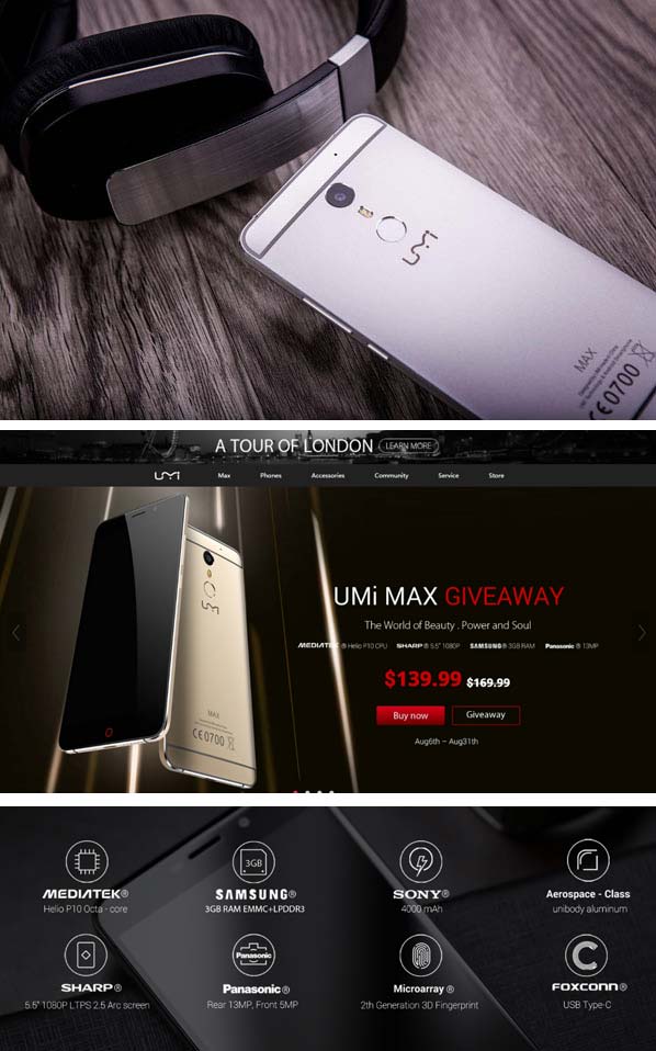 UMi Max предлагает своему владельцу отличный 5.5" Full HD LTPS IPS экран производства Sharp, чтение с которого возможно даже при ярком солнечном свете, защита обеспечена Corning Gorilla Glass 3. Основой аппарата стала SoC MediaTek Helio P10 (MT6755), объём оперативной памяти LPDDR3 равен трём гигабайтам, eMMC флеш памяти в наличии 16 гигабайт, расширение возможно до впечатляющих 256 гигабайт, не без помощи карточек microSD/HC/XC, разумеется.
