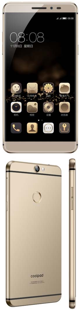IPS экран планшетофона защищён 2.5D стеклом, обладает диагональю 5.5", разрешение составляет 1920x1080, он ёмкостного типа. Тыловая камера получила 13МП сенсор, фронтальная - 5МП сенсор. Coolpad MAX дружит с WiFi, Bluetooth, GPS, NFC и OTG, имеет 3.5мм аудиовыход, порт Micro USB, G-сенсор, светосенсор, E-компас, датчик приближения и гироскоп. Питается новинка от литиевой батареи на 2800 мАч, обладает размерами 152x75.5x6.9мм, весит 175 граммов.