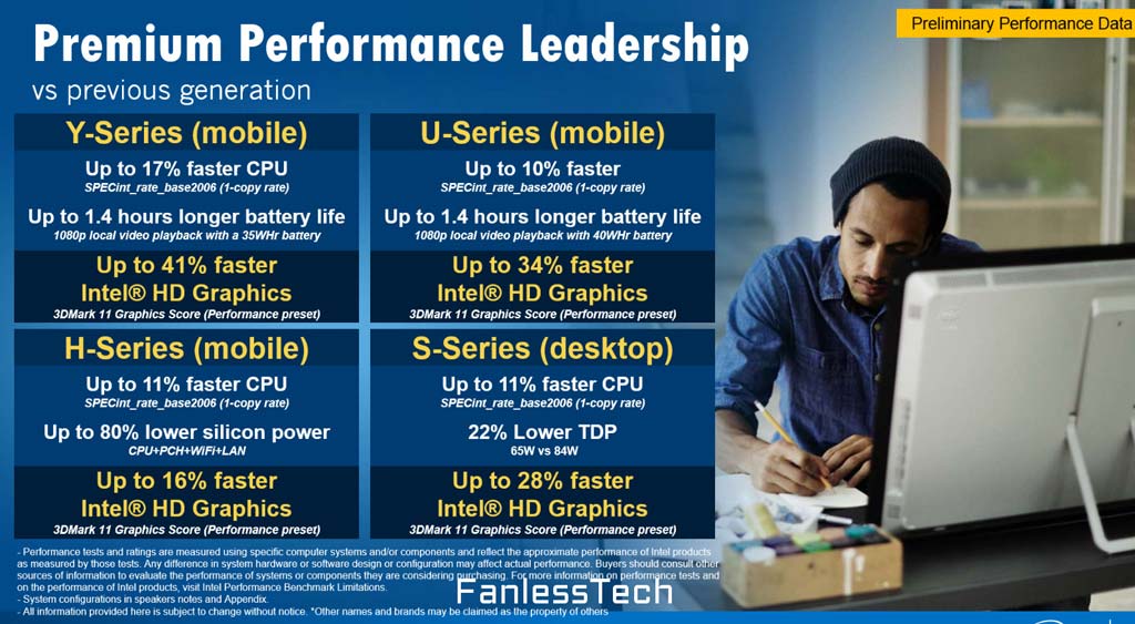Ресурс FanlessTech поделился слайдами от Intel, по которым можно сделать выводы о быстродействии новых процессоров Skylake.