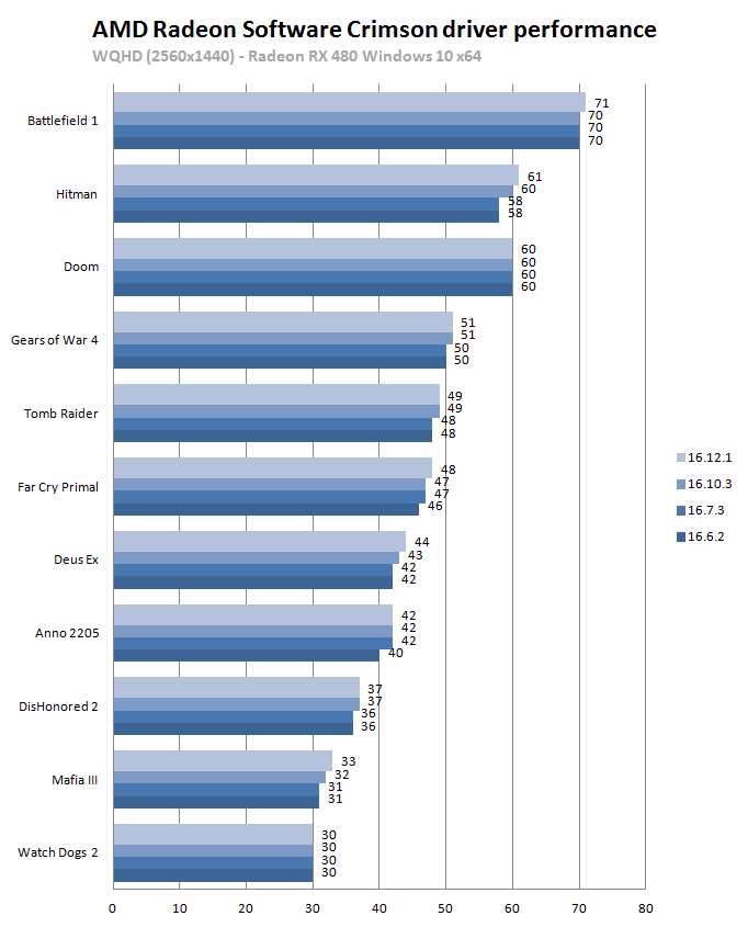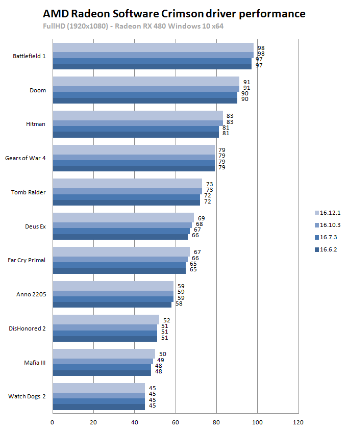 Ресурс Guru3D опубликовал результаты бенчмарков видеокарты Radeon RX 480 в нескольких разрешениях, "фишка" в том, что использовалось четыре разных версии драйверов, в том числе самые новые Radeon Software Crimson ReLive Edition 16.12.1.