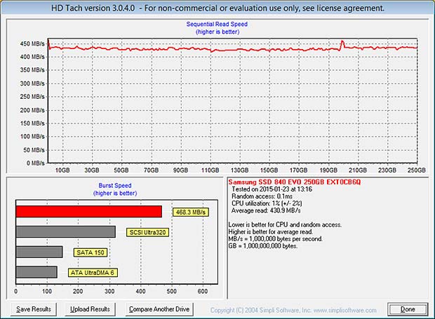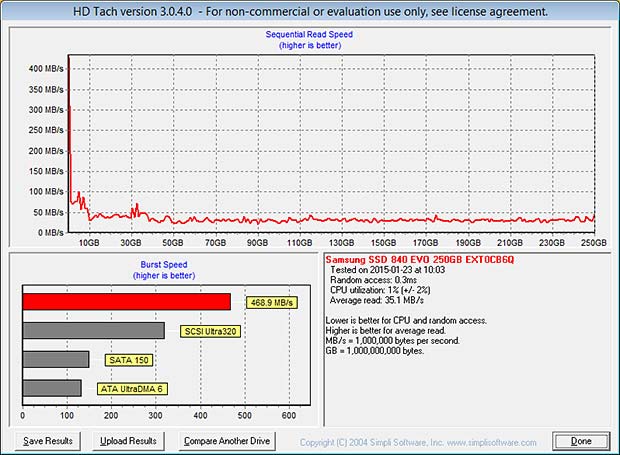 Как известно, у данных накопителей на базе TLC памяти были проблемы со скоростью работы, возникающие при обращении к старым данным. Этот баг был исправлен в октябре 2014 года выпуском утилиты по восстановлению производительности. Однако спустя несколько месяцев специалисты с указанного ресурса решили повторить тесты на SSD 840 EVO с прошивкой EXT0CB6Q, на которой указанная проблема должна быть устранена. Результаты не порадовали: