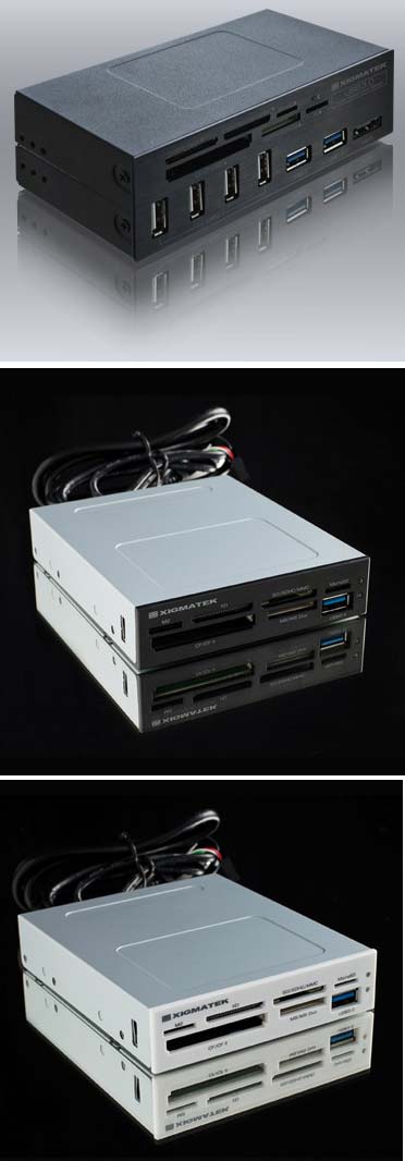 Нам предлагают поглядеть на два устройства серии Accessor, одно из них именуется Pro, а другое Ultimate. Оба поставляются в двух цветовых вариантах (чёрном и серебристом), первый девайс предназначен для установки в 3.5" отсек ПК, а второй помещается для работы в 5.25" отсек.
