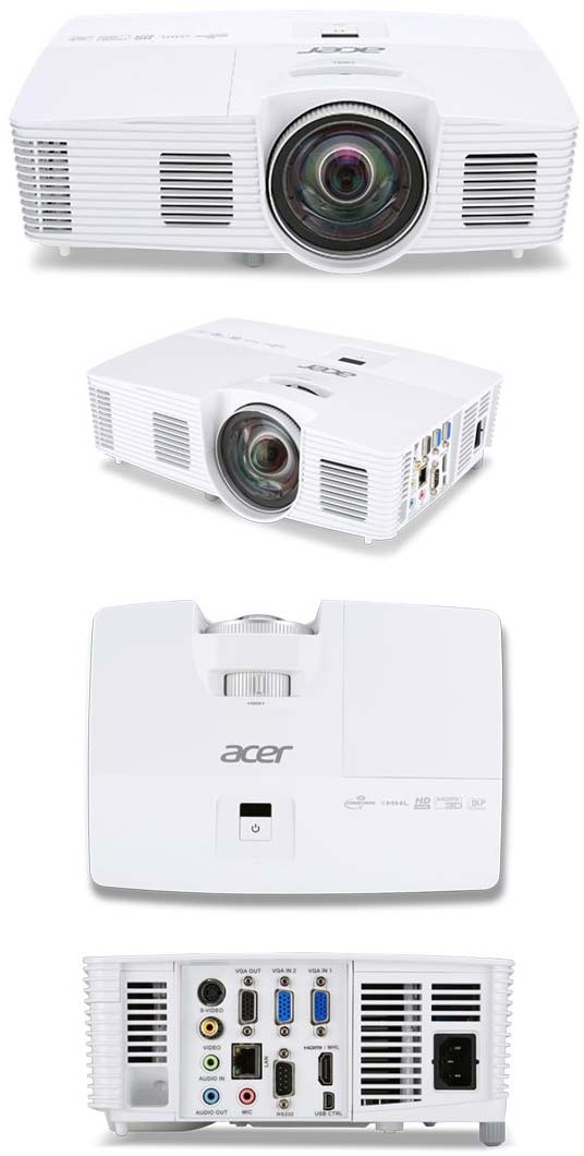 Устройство называется S1383WHne, оно использует короткофокусную технологию для проецирования изображения впечатляющей диагонали с небольшого расстояния (300" с 10.9 фута), сделано это для максимизации вариантов размещения проектора. Аппарат от Acer имеет яркость 3200 ANSI люмен, разрешение 1280x800 и контрастность 13000 к 1.