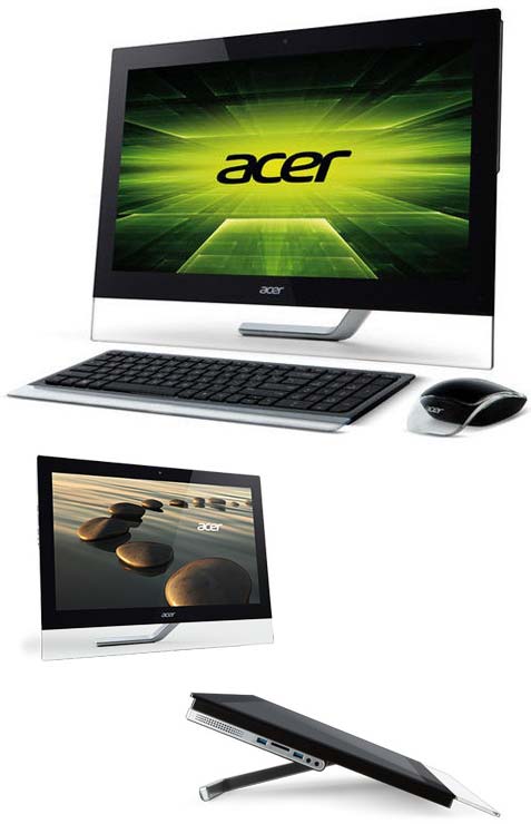 Устройство называется Aspire U5-610, этот аппарат имеет 23" сенсорный Full HD экран с поддержкой 10-точечного Multi-touch, тип панели/матрицы - TN, разрешение дисплея - 1920x1080, показатель яркости - 250 кандел на квадратный метр, контрастность 1000 к 1, время отклика - 3мс.