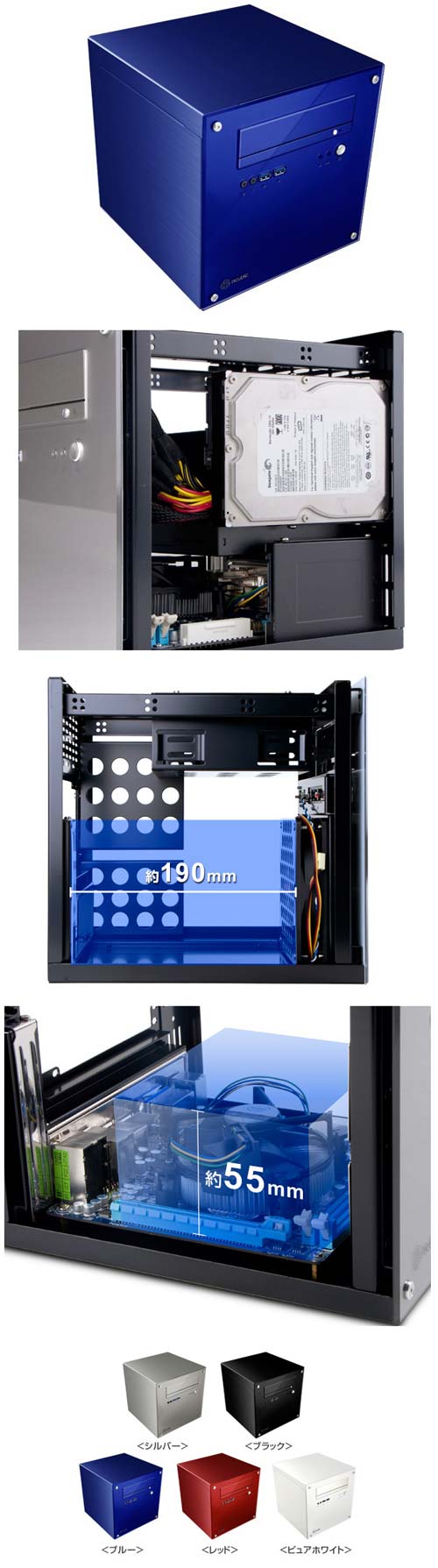 Доступные цвета изделий серии Acubic C10R: серебристый, голубой, красный, чёрный и белый. Сообщается, что в шасси влезет видеокарта длиной до 190мм, а также процессорный кулер, высота которого не превышает 55мм.