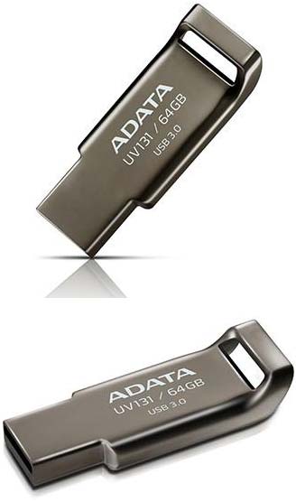 Устройство называется UV131, это обычная флешка с USB 3.0 подключением, корпус который сделан из сплава цинка, поэтому весьма крепок, да и выглядит привлекательнее своих пластиковых собратьев. Новинки серии доступны в 16, 32 и 64ГБ вариантах, несмотря на интерфейс подключения USB 3.0, в пресс-релизе нет сведений о скоростных спецификациях новинки, увы и ах. К счастью, это не всегда (но часто) означает, что скорость у изделия не ахти. ADATA зато не забыла сообщить нам о наличии софта UFDtoGO и OStoGO, идущего в комплекте с новинкой. Исполнение аппарата - бесколпачковое, отверстие для крепления на брелок или какую-нибудь цепочку имеется.