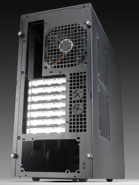По виду и начинке Raptor - чистой воды мидл-тауэр без затей. Габариты - 430х200х476мм, вес не указан. У него имеется четыре 5.25 дюймовых отсека под оптические приводы и реобасы, USB 2.0, аудио и eSATA порты спереди. Предустановлено два 120мм вентилятора - спереди и сзади, имеются отверстия для шлангов жидкостной системы охлаждения. Оптические приводы устанавливаются без использования инструментов (tools-free). Имеются, как минимум, два варианта отделки той части корпуса, на которой располагаются USB и прочие порты - красный и белый. Спецификаций очень мало, к сожалению.