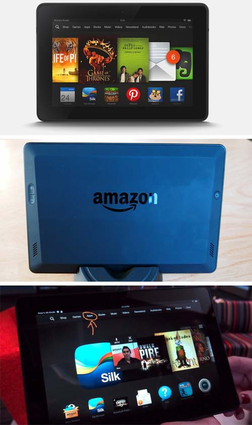 Аппарат именуется Kindle Fire HDX, выпущен в вариантах с 7" и 8.9" экранами, разрешение тачскрина первой модели - 1920x1200, а второй - 2560x1600. В основе аппаратов лежит самая быстрая на сегодня SoC от компании Qualcomm - Snapdragon 800, работающая на тактовой частоте 2.2ГГц, объём оперативной памяти равен 2ГБ, по заявлению Amazon, благодаря мощным комплектующим, производительность устройства возросла чуть ли не втрое, если сравнивать новинки с Kindle Fire HD.