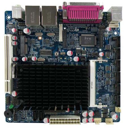 Аппарат называется AMB-D255T3, это материнская плата форм-фактора Mini-ITX, которая как раз и предназначена для встраиваемых систем. В неё интегрирован двухъядерный процессор Atom D2550, тактовая частота которого составляет 1.86ГГц. Охлаждение творения Intel полностью пассивное.