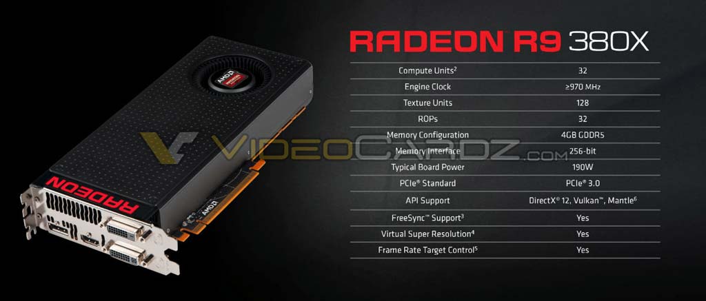 | AMD Radeon R9 380X | AMD Radeon R9 380 | AMD Radeon R9 285 | |