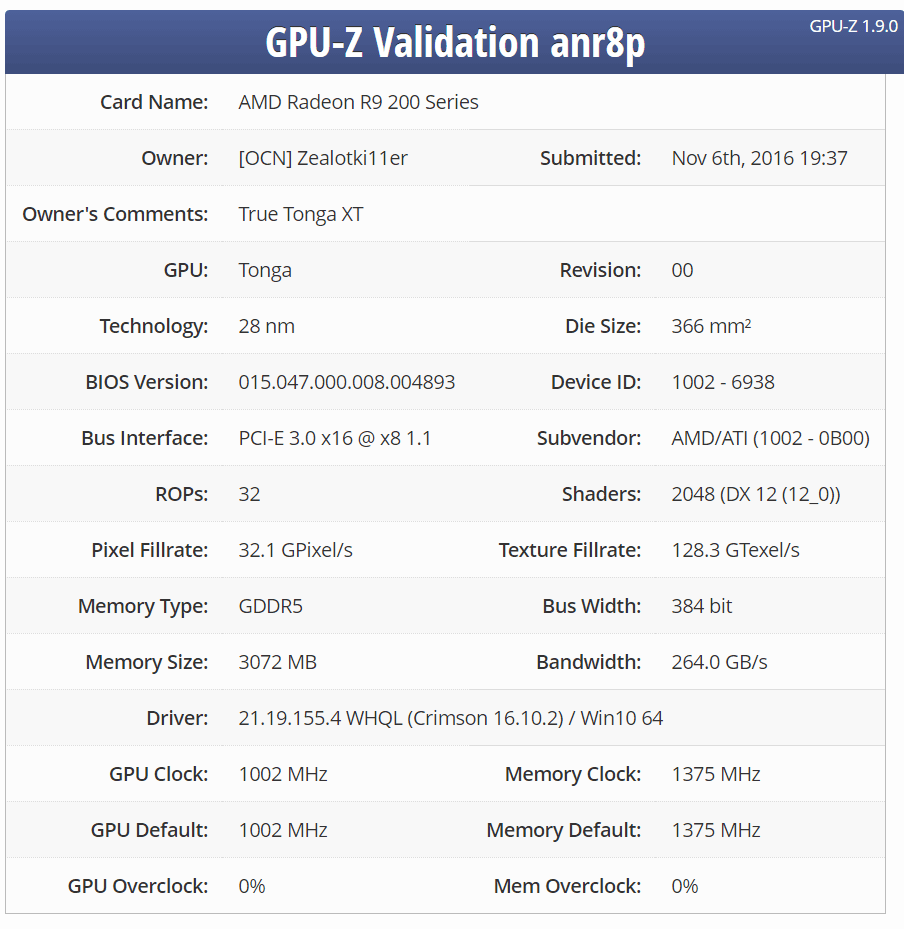 У Tonga XT в наличии 2048 потоковых процессоров и 384-битная шина, такая конфигурация не существует ныне, даже у R9 380X лишь 256-битная шина.