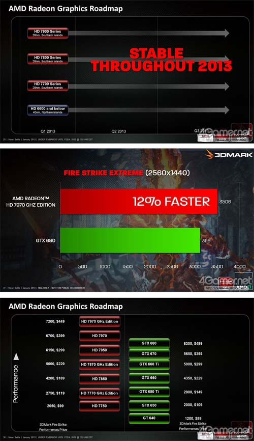 Получается, что AMD прекращает гонку, длившуюся с 2007 года, в которой каждый год нужно было представлять новое поколение видеокарт, дабы не проиграть на фоне продукции конкурентов. Nvidia же и в этом году, скорее всего, покажет свои новые (на деле, новинок среди них будет не так уж и много) видеокарты, семейство обновлённых видеоадаптеров на базе Kepler с флагманом GeForce Titan во главе. AMD же явно решила сосредоточиться на выпуске GPU для консолей нового поколения.