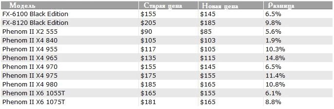 О снижении ценника на FX-6100 и FX-8120 BE мы уже знаем, а вот всё остальное приятная неожиданность. Так держать, AMD! Или, лучше сказать, Intel? ![]()