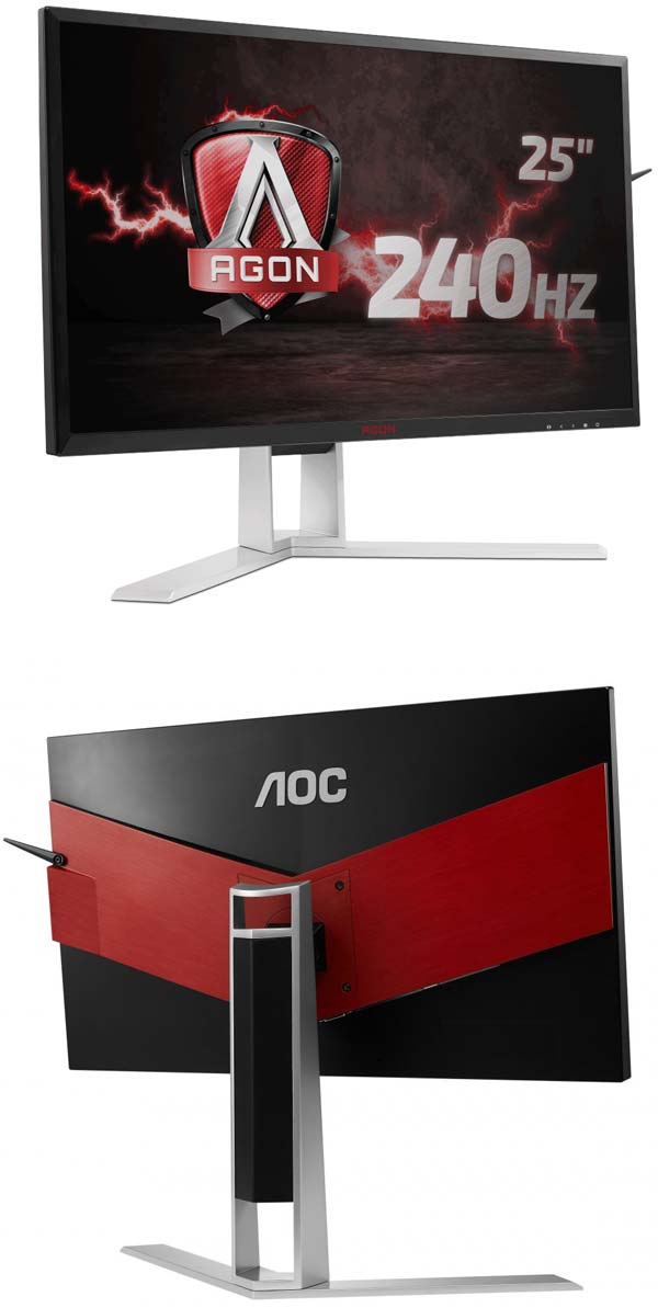 Аппарат получил имя AGON AG251FZ, у него 24.5" Full HD TN экран с 240Гц развёрткой, что ставит его особняком от большинства игровых мониторов. Яркость составляет 400 кандел на квадратный метр, контрастность - 1000 к 1, время отклика - 1мс (g2g), углы обзора - 170 градусов по горизонтали и 160 по вертикали, увы - последние показатели у TN мониторов улучшать никак не хотят. Заявлена поддержка Adaptive-Sync, тип подсветки - WLED.