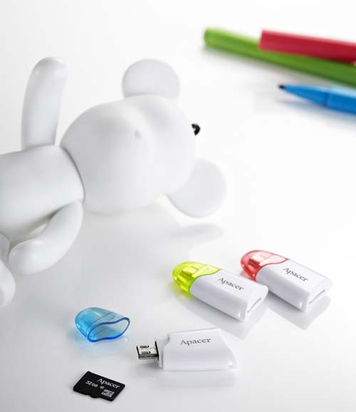 В своём пресс-релизе Apacer хочет поведать об устройстве AM701. Изделие внешне напоминает флешку, но на деле является картридером с поддержкой OTG, а значит пользоваться им смогут все, у кого нужный порт имеется. Цвета колпачков устройства - розовый, зелёный и синий, корпус новинки сделан из белого АБС пластика.