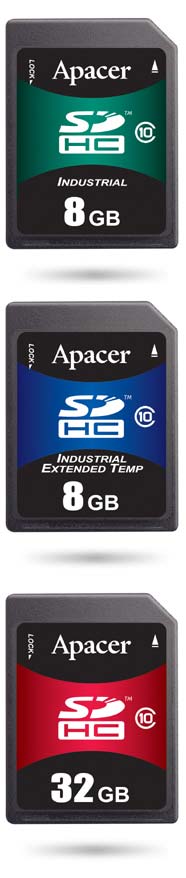 Apacer объявила о выходе нескольких линеек карт памяти. Все они имеет скоростной индекс Class 10, при этом скорости у них различаются. Одна из карточек (SD-STD) обладает следующей производительностью - чтение данных 20МБ/с, а запись - 13МБ/с, при этом в ней используется долговечная SLC NAND флеш память. Ёмкость - от 256МБ до 8ГБ. Линейка карточек SD-ET обладает всеми характеристиками предыдущей серии карт памяти SDHC, но при этом ещё и позволяет пользователю использовать себя при температурах от минус 40 до плюс 80 градусов по Цельсию. Линейка SD-M является самой простецкой из всей троицы, т.к. использует MLC NAND флеш память, да и скорость чтения и записи у неё ниже - 19 и 8МБ/с. Зато у неё имеются плюсы в виде 24-битной коррекции ошибок, ёмкостью от 4 до 32ГБ и более низкой цены (про стоимость, это я уже выдвинул своё предположение).