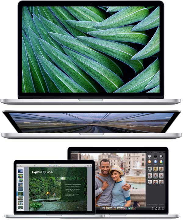 На фото новые творения Apple - лэптопы MacBook Pro с дисплеем Retina