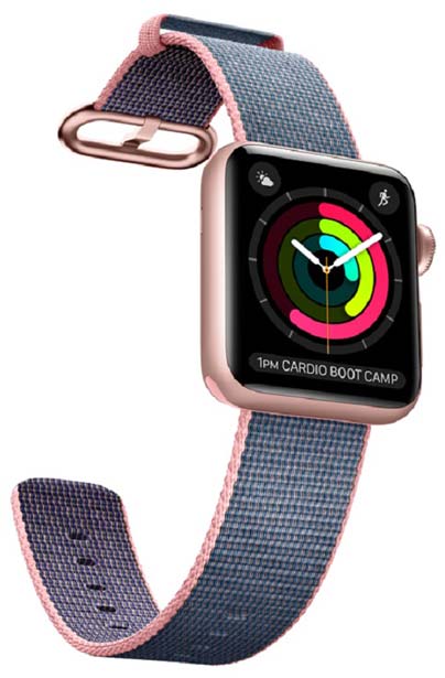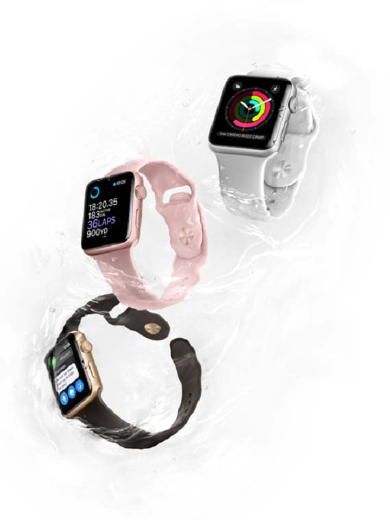 Вторая новинка - умные часы Apple Watch Series 2. Аппарат основан на двухъядерной SoC S2 с новым графическим ядром, которое вдвое быстрее используемого в ранее выпущенном гаджете этого же типа. Экран вдвое ярче по сравнению с предшественником - 1000 нит, есть поддержка GPS, устройство водонепроницаемо, с ним можно нырять на глубину до 50 метров. Функционал управляемых watchOS 3 часов мало чем отличается от прочих устройств этого типа - подсчёт пройденного расстояния, сделанных шагов, сожжённых калорий, показ оповещений с iPhone и так далее.