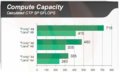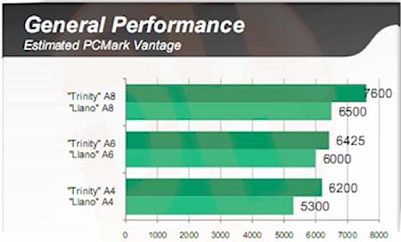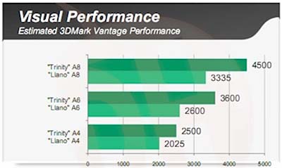 Как я писал ранее, Trinity должна быть несколько производительнее ныне существующего Llano, что активно используется многими вендорами в своих портативных компьютерах. Давайте посмотрим на графики и убедимся в истинности этого утверждения: