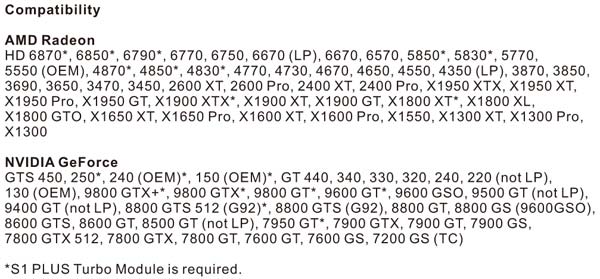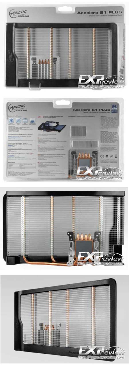 Новинка предлагает свои услуги по пассивному охлаждения видяшек, многие пользователи мечтают о бесшумном ПК, так что релиз такого кулера очень даже в тему. Габариты Accelero S1 Plus: 230х145х42мм, вес - 420 граммов. Радиатор состоит из 32 алюминиевых рёбер, толщина каждого из которых - 0.4мм. Задействованы также и четыре 6мм теплотрубки, что с основания радиатора передают тепло на его пластины. Вес конструкции - 420 граммов, список совместимых моделей видеокарт можно посмотреть ниже:
