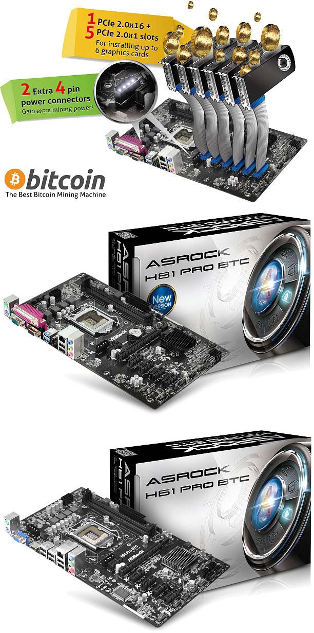 А вот и фотографии системных плат H81 Pro BTC и H61 Pro BTC от ASRock